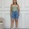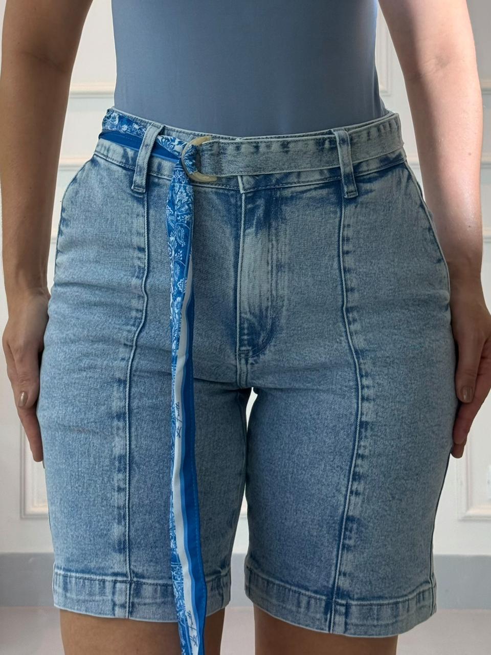 A Bermuda Ciclista Lavada Ref.: 21254 em padrão estonado é a escolha perfeita para quem busca estilo com um toque despojado e moderno. Seu design apresenta detalhes em recorte na frente que valorizam o visual, enquanto o cinto em tecido, adornado com um delicado lenço na ponta e argolas em acrílico, traz um diferencial único à peça.