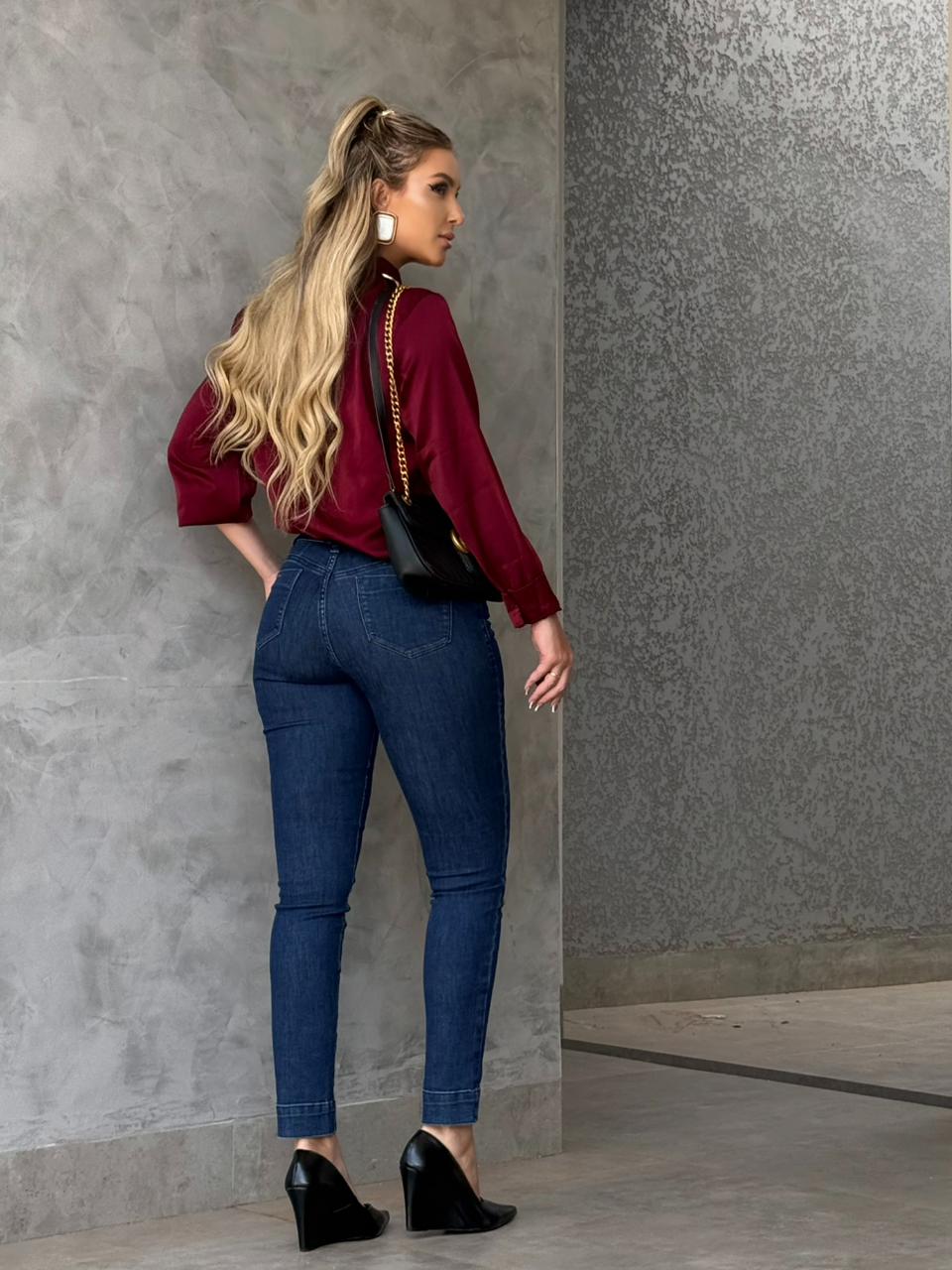Cigarrete jeans com modelagem ajustada, que valoriza a silhueta com conforto e modernidade. A peça conta com recorte anatômico na frente, que proporciona melhor caimento ao vestir, além de barra larga de 4 cm, que traz mais estrutura e acabamento ao visual.