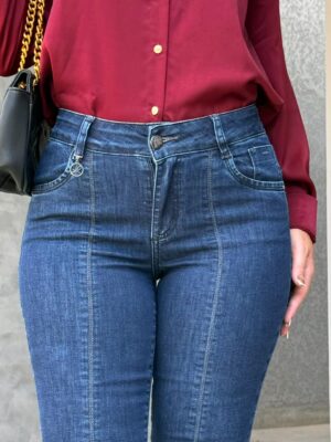Calça Cigarrete Jeans Feminina com Elastano e Detalhe na Perna com Barra Larga