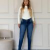Descubra o equilíbrio perfeito entre sofisticação e conforto com a Calça Jeans Cigarrete em Tecido Malha com Detalhe na Barra – Ref. 21316. Esta peça única traz a elegância do jeans em lavagem azul, combinada com a maciez e elasticidade do denim em malha, garantindo liberdade de movimento durante todo o dia.
