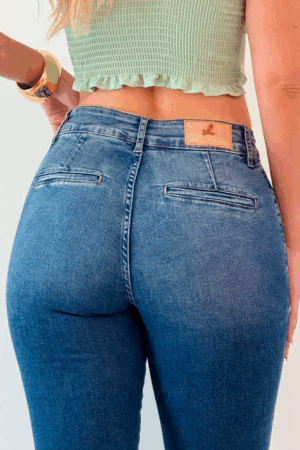 Descubra a perfeita combinação de moda e praticidade com a Calça Cropped Jeans Azul Médio. Com modelagem cropped que valoriza a altura da canela e cós médio/alto, ela traz um toque moderno e elegante para o seu guarda-roupa.