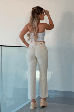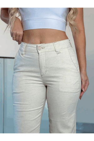 Calça Feminina Reta em Linho com Elastano