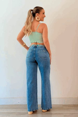 Calça Wide Leg com Lenço – Jeans Azul (Ref. 20664)