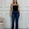 A calça boot cut é a escolha perfeita para quem busca estilo, conforto e um caimento impecável. Possui pala modeladora que valoriza a silhueta, além de recorte frontal com aplicação de tachas, trazendo um toque moderno e sofisticado ao visual. Confeccionada em tecido com alto teor de elastano, garante excelente conforto e liberdade de movimentos ao longo do dia. A lavagem em tom escuro, com detalhes e efeitos used, confere personalidade e elegância, tornando a peça versátil para compor looks cheios de atitude.