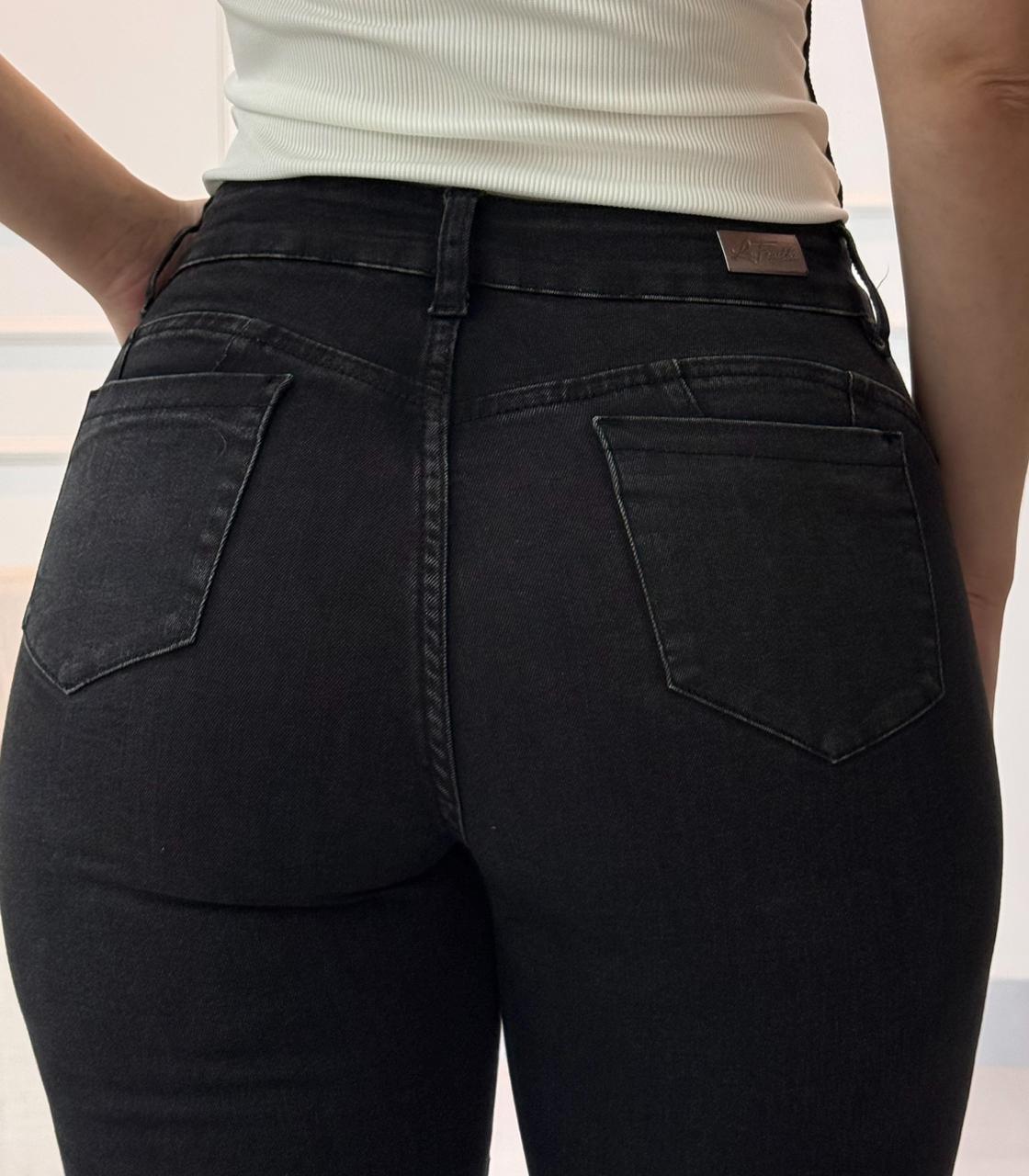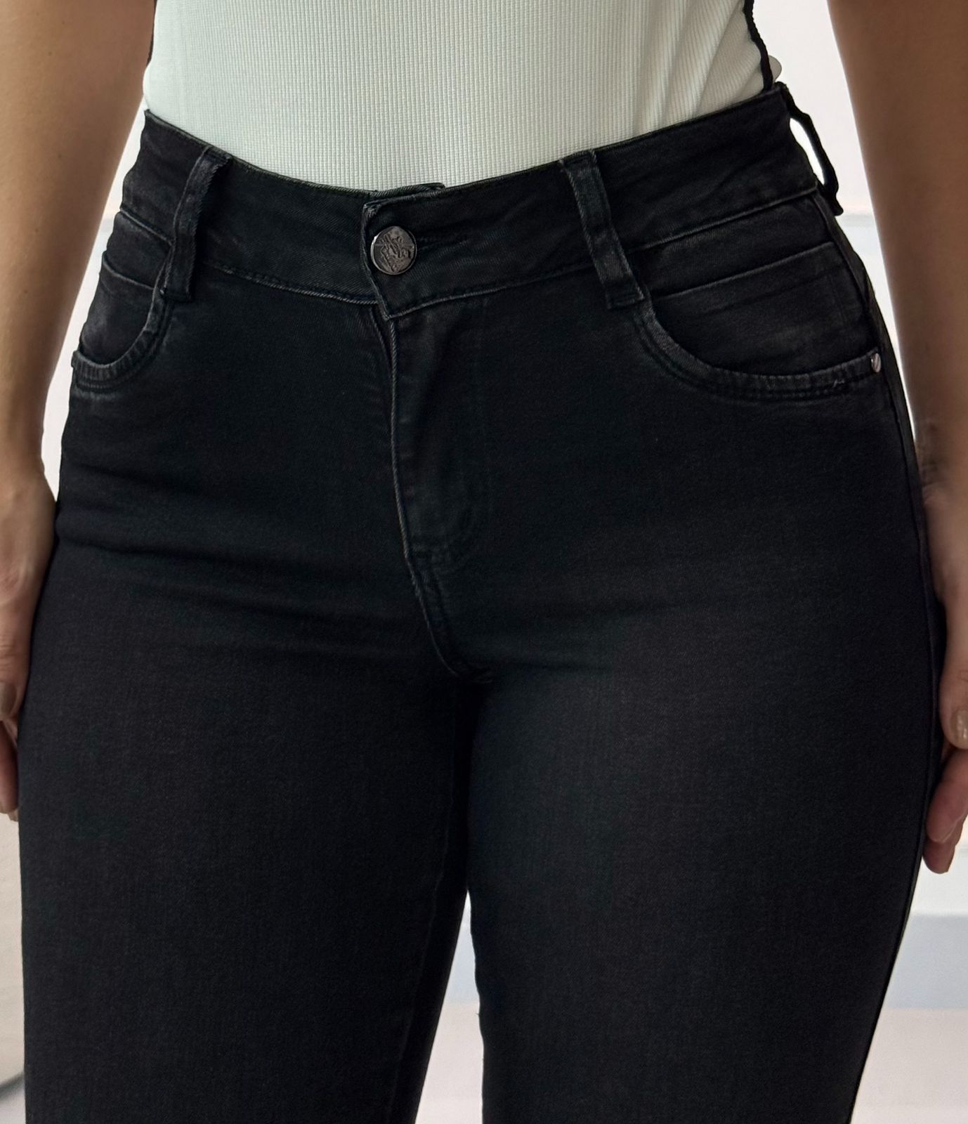 Calça Jeans Boot Cut Feminina Preta Estonada Triple Dry