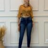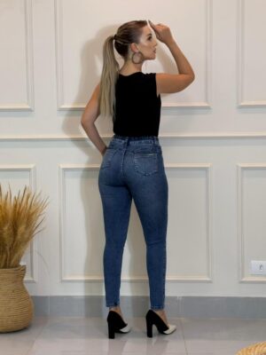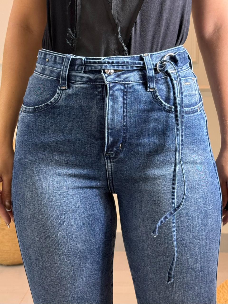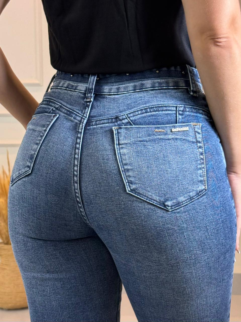 Cigarrete modeladora com tecnologia chapa-barriga Ref: 21555, desenvolvida para oferecer sustentação e realçar a silhueta com conforto e segurança ao vestir. A pala redonda com pences modeladoras proporciona melhor ajuste ao corpo e efeito valorizador no traseiro. O destaque fica por conta dos detalhes no cós com cinto e fivela de metal articulada, além das tiras com amarração, que acrescentam um toque moderno e sofisticado ao visual. A lavanderia com efeitos sutis de lixado used reforça o aspecto contemporâneo da peça. Um modelo que veste com precisão, modela com elegância e valoriza a silhueta em cada detalhe.