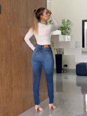 Descubra a exclusividade da nossa calça jeans com cigarrete modeladora chapa barriga, uma peça que eleva sua silhueta a outro patamar. Com pences modeladoras e pala redonda, ela realça, empina e envolve o bumbum, delineando e destacando os contornos onde você mais deseja.
