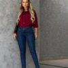 Calça jeans cigarrete feminina modeladora, desenvolvida para valorizar a silhueta com elegância e sofisticação. A modelagem ajustada cria um visual moderno e versátil, ideal para composições que vão do casual ao mais elaborado.