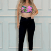 Modelagem cropped (altura no meio da canela), cós médio/alto.