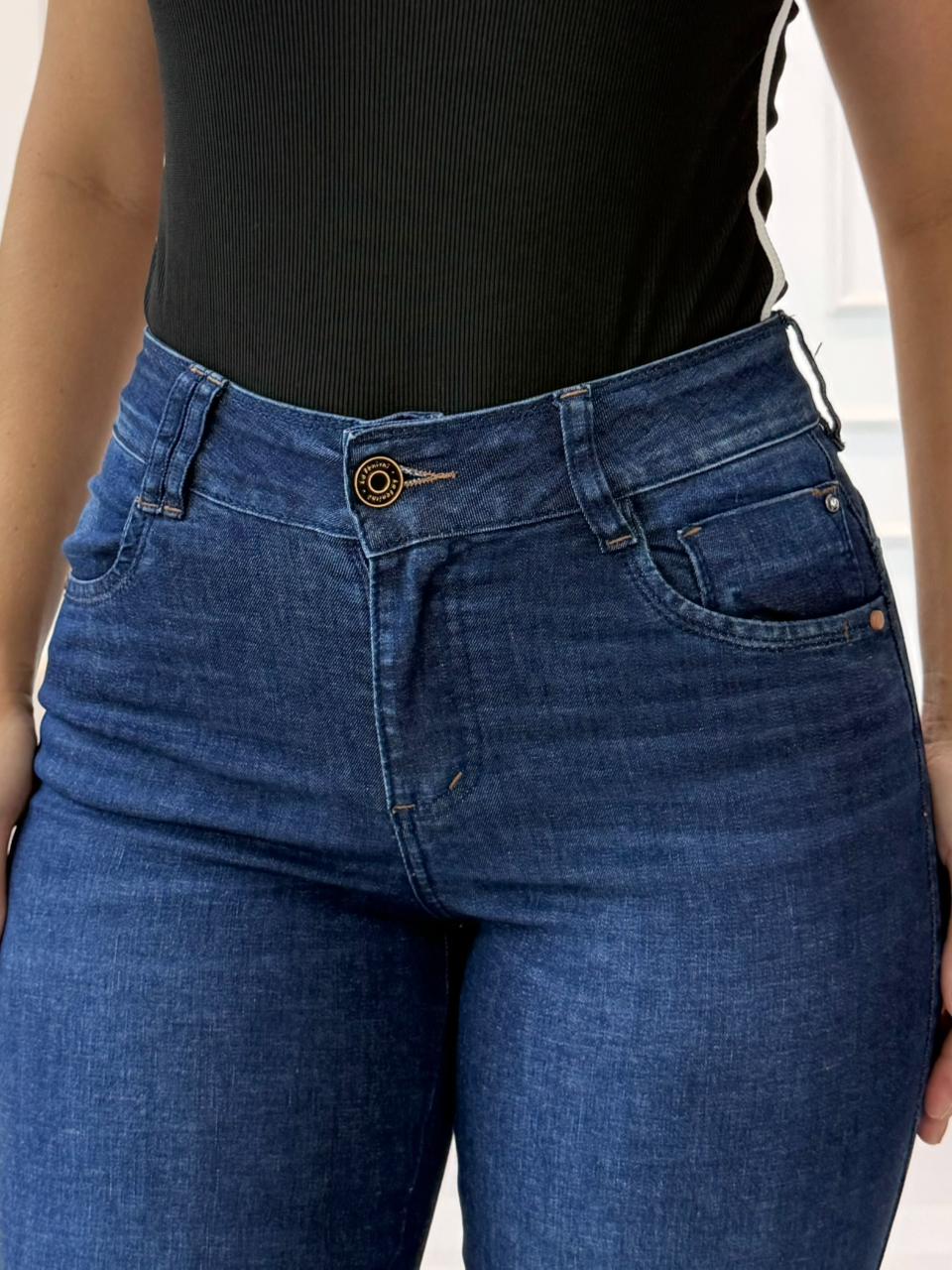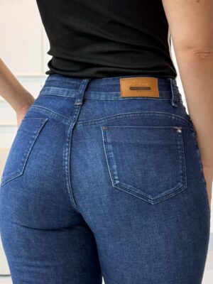 Confeccionada em denim de alta elasticidade com excelente recuperação, garante conforto o dia todo sem perder a forma. Sua lavagem clássica combina facilmente com looks para o trabalho, saídas ou composições com salto e bota, tornando-se um item-chave no guarda-roupa.