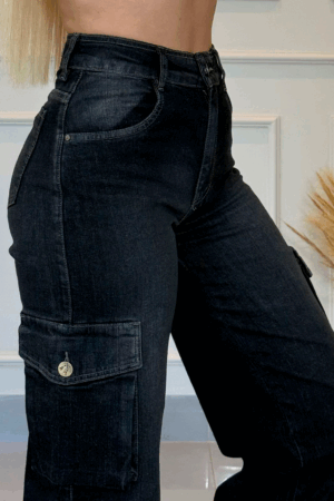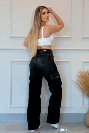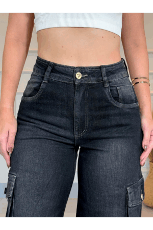 Calça Wide Leg Cargo com Elastano – Ref. 20887 ✨ A combinação perfeita entre estilo utilitário e conforto para o Verão 2026! Confeccionada em jeans black com 98% algodão e 2% elastano, essa calça proporciona caimento solto e cintura média, valorizando sua silhueta com elegância.