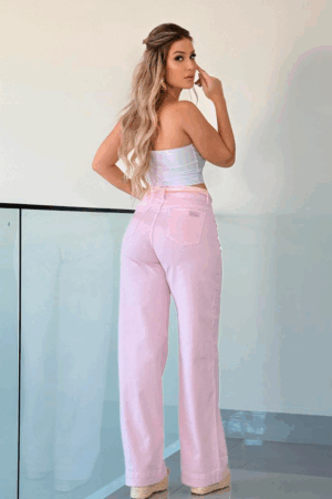 Confeccionada em denim macio com elastano, a calça oferece mobilidade e ótimo caimento, perfeita para o dia a dia com muito conforto. A delicada cor rosa pastel “overdyed” é fácil de combinar e ideal para a temporada verão 2026.