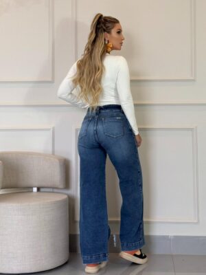 Descubra a elegância atemporal da Calça Wide Leg com Elastano – Ref: 21225. Esta peça conta com uma modelagem ampla e sofisticada que alongam a silhueta, oferecendo um caimento fluido e moderno para compor looks refinados.