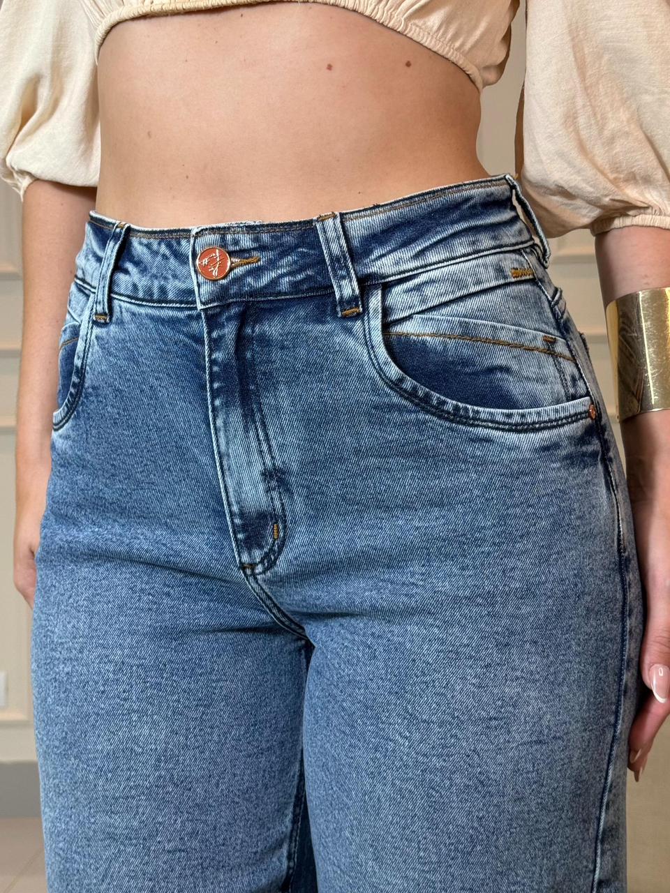 Calça Jeans Wide Leg com Elastano