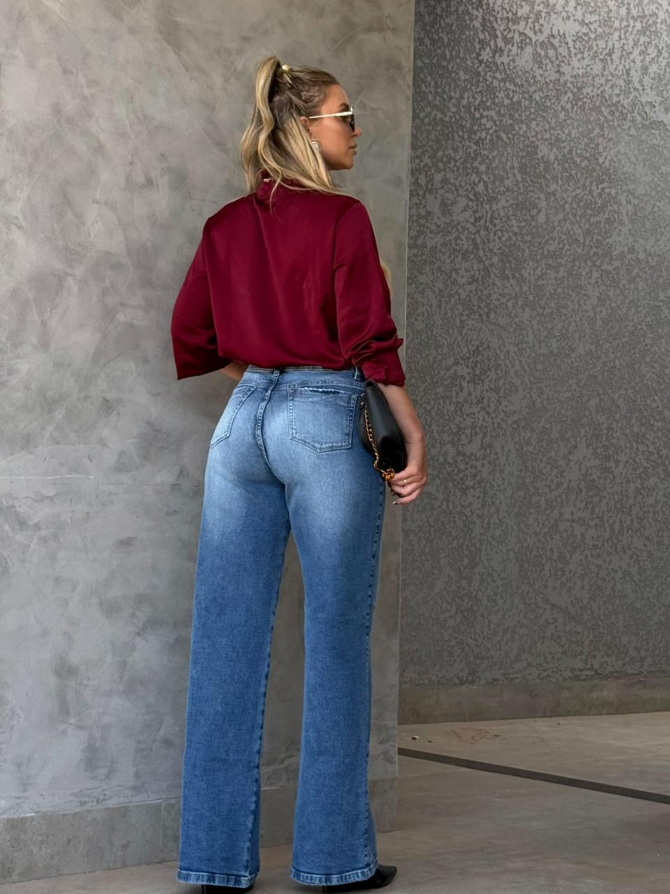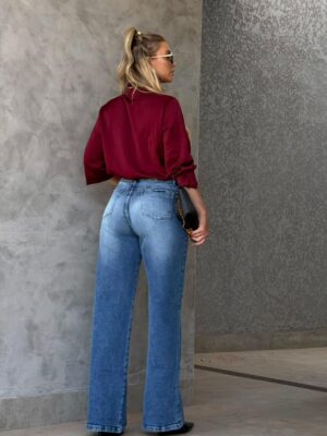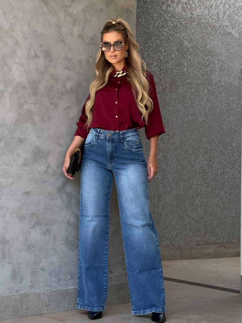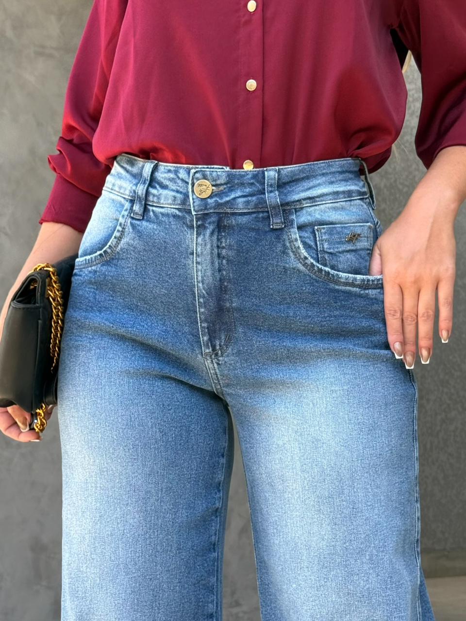 Sua modelagem ampla e o caimento fluido alongam a silhueta, conferindo um toque de modernidade e leveza ao look. A lavagem com efeito lixado e used realça o estilo atual, tornando esta calça uma escolha perfeita para quem busca exclusividade e personalidade.