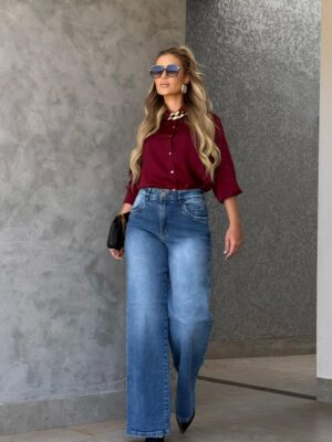 Descubra a sofisticação da Calça Wide Leg com Elastano — Ref. 21236, uma peça que une elegância e conforto em um design contemporâneo.