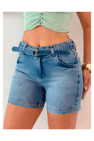 Shorts Jeans Feminino Cós Médio com Cinto de Tecido Removível