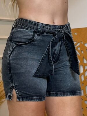 Shorts Jeans Meia Coxa com Cinto em Tecido