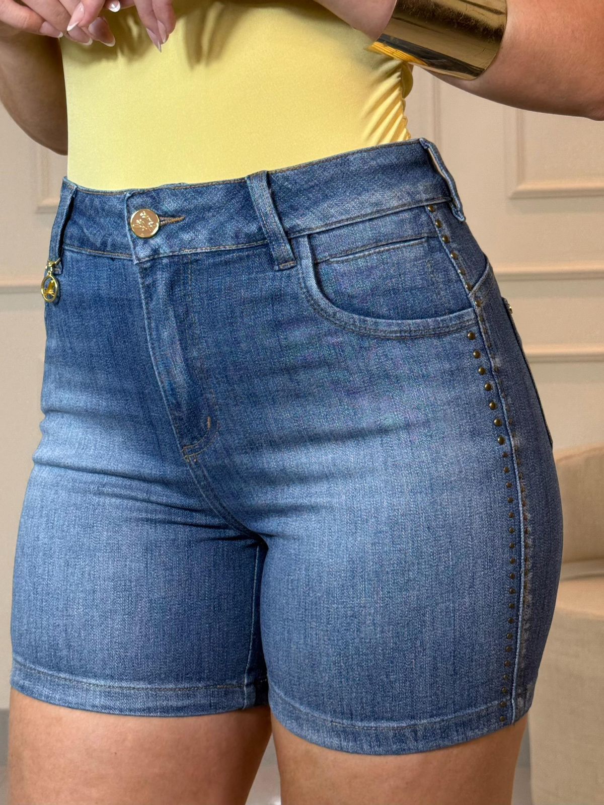 Shorts meia coxa com detalhes em tachas
